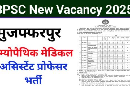 Bihar Assistant Professor Bharti 2025: मुजफ्फरपुर होम्योपैथिक मेडिकल कॉलेज और हॉस्पिटल में असिस्टेंट प्रोफेसर की भर्ती, जल्दी करे अप्लाई