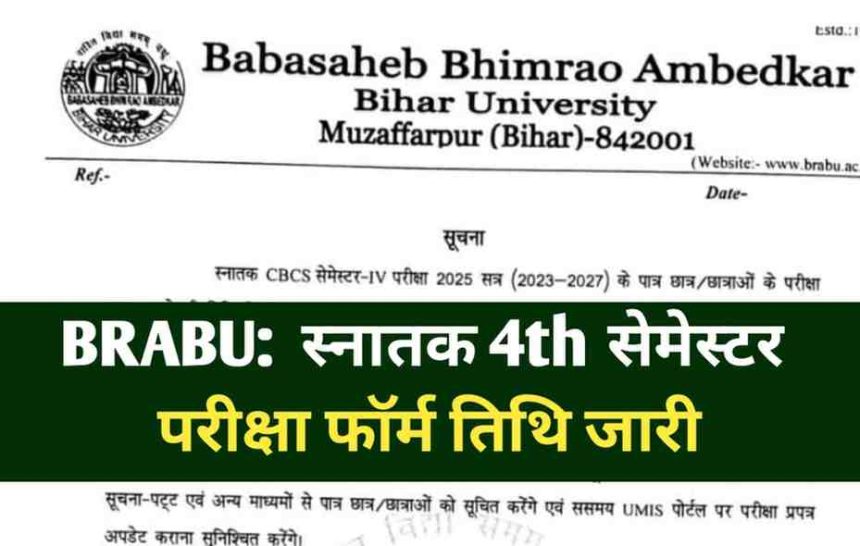 BRABU ने जारी किया नोटिस: पीजी 4th सेमेस्टर (2023-25) परीक्षा फॉर्म भरने की तिथि घोषित मुजफ्फरपुर। BRABU PG 4th Semester Exam Form Date 2023-25: बाबासाहेब भीमराव अम्बेडकर…