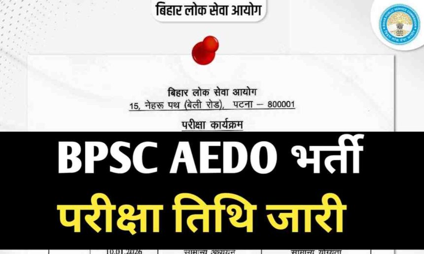 बिहार लोक सेवा आयोग (BPSC) द्वारा सहायक शिक्षा विकास पदाधिकारी (AEDO) भर्ती परीक्षा 2026 को लेकर बड़ी अपडेट सामने आई है। आयोग द्वारा जारी परीक्षा कार्यक्रम के अनुसार, BPSC AEDO Admit Card 2026 परीक्षा से लगभग 7 से 10 दिन पहले आधिकारिक वेबसाइट पर जारी किया जाएगा।