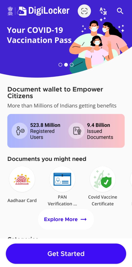 स्टेप 1 डिजीलॉकर पर अपना अकाउंट बनायें