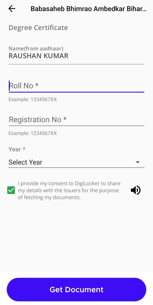 BRABU Degree Certificate Download on Digilocker 2025: स्नातक रोल नंबर Registration no. एवं पासिंग ईयर देना होगा