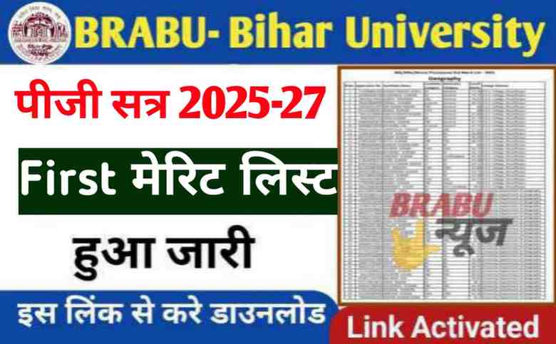BRABU PG सत्र 2025-27 की First Merit List 27 जनवरी 2026 को जारी की गई है।