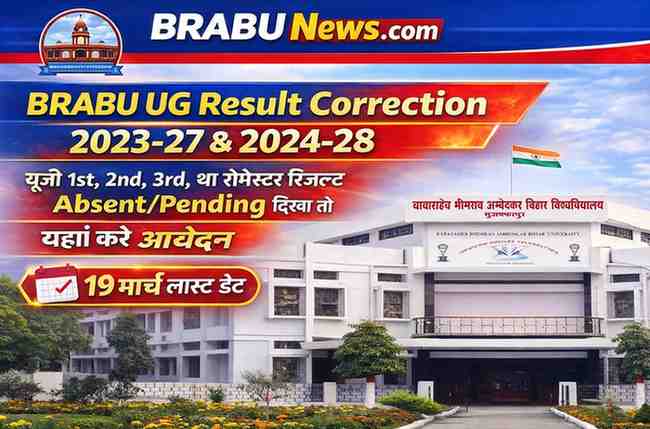 BRABU UG Result Update: Absent/Pending Students Kare Turant Apply: Babasaheb Bhimrao Ambedkar Bihar University (BRABU) ने स्नातक (UG) सत्र 2023-27 एवं 2024-28 के छात्रों के लिए एक अत्यंत महत्वपूर्ण सूचना जारी की है। विश्वविद्यालय ने स्पष्ट किया है कि जिन छात्रों के परीक्षा परिणाम में ESE Theory या ESE Practical में Absent / Pending दर्ज हो गया है, उन्हें अब अपने रिजल्ट में सुधार कराने का अवसर दिया जा रहा है।