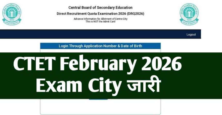 CTET February 2026 Examination City: केंद्रीय शिक्षक पात्रता परीक्षा (CTET) 2026 में शामिल होने वाले लाखों उम्मीदवारों के लिए बड़ी खबर सामने आ चुकी है। CTET Exam City Slip आधिकारिक वेबसाइट पर जारी कर दी गई है। अब अभ्यर्थी यह जान सकते हैं कि उनका परीक्षा केंद्र किस शहर में निर्धारित किया गया है।हालांकि, Exam City Slip में केवल शहर की जानकारी दी जाती है, न कि पूरा परीक्षा केंद्र का पता। पूरा विवरण Admit Card जारी होने के बाद मिलेगा।