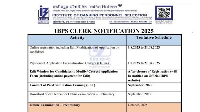 IBPS Clerk Vacancy 2025: महत्वपूर्ण तिथियाँ