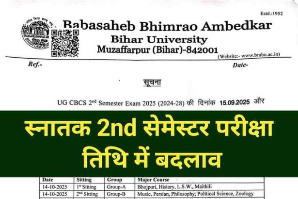 BRABU UG Spot Admission Date Extended 2024-28: बाबासाहेब भीमराव अम्बेडकर बिहार विश्वविद्यालय, मुजफ्फरपुर (Babasaheb Bhimrao Ambedkar Bihar University - BRABU) के स्नातक सत्र 2024-28 में नामांकन की अंतिम तिथि Babasaheb Bhimrao…