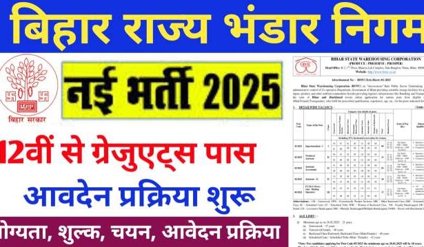 Bihar BSWC Various Post Vacancy 2025: बिहार स्टेट वेयरहाउसिंग कार्पोरेशन में…