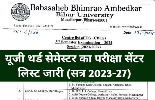 BRABU UG 3rd Semester Admission Date 2023-27: बाबासाहेब भीमराव अम्बेडकर बिहार विश्वविद्यालय, मुजफ्फरपुर (Babasaheb Bhimrao Ambedkar Bihar University - BRABU) की ओर से स्नातक सत्र 2023-27 का थर्ड सेमेस्टर में नामांकन के लिए आज यानी 23 November 2024 को नोटिस जारी कर दिया गया है BRA Bihar University |जॉब कैम्प| रोज़गार समाचार |परीक्षा |रिजल्ट समेत अन्य जानकारी के…