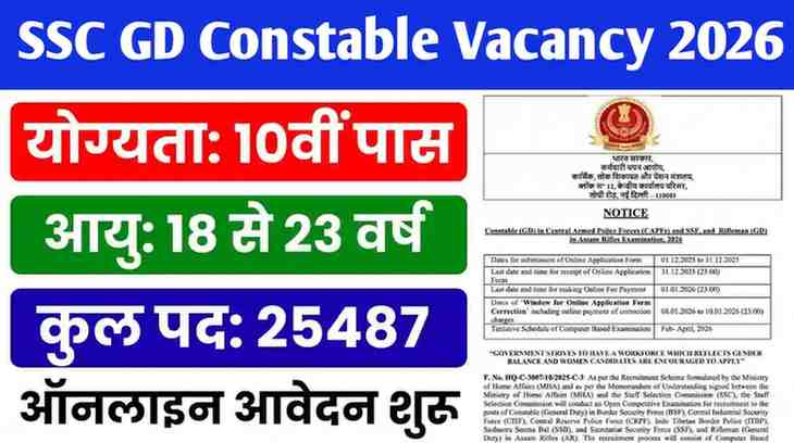 SSC ने इस भर्ती के लिए कुल 25,487 रिक्तियों की